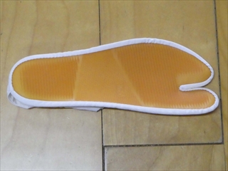 裏あめ色ゴム足袋 (大工方・鳴物係 兼用) 底にゴムを使用していて、滑りにくい足袋です。 ゴムは薄めで、地下足袋ではありません。 またゴムに粘着性はありません。 大工方、鳴物係ともに使える汎用足袋です。 アッパー生地:綿100%